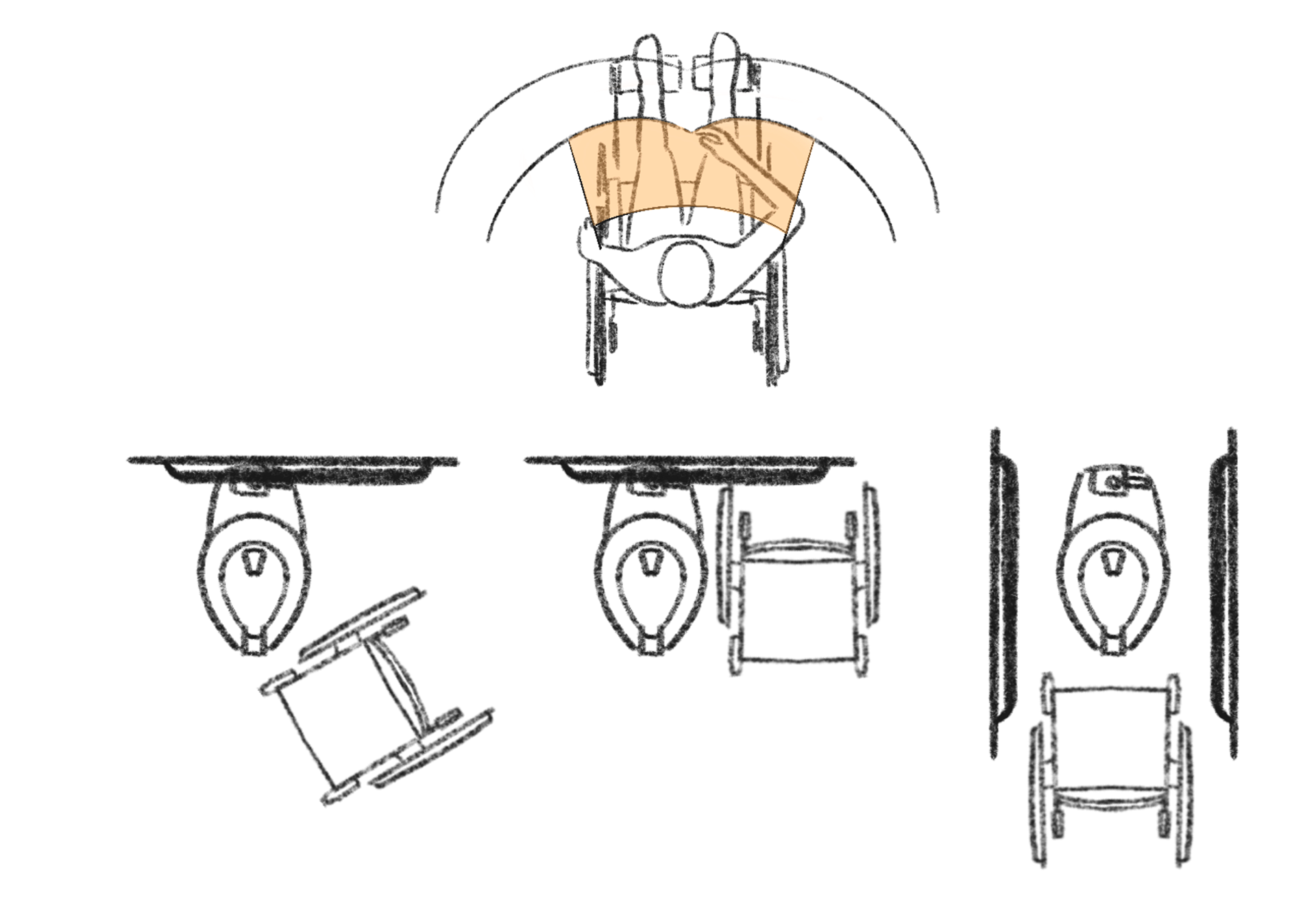 Initially, I focused on two areas: wheelchair use in restrooms and different indoor tasks. I observed various disability restrooms to understand layout variations and the challenges faced by wheelchair users, such as reaching higher or lower levels. I also created illustrations to visualize comfortable working zones, aiding in the placement of electric wheelchair controls.